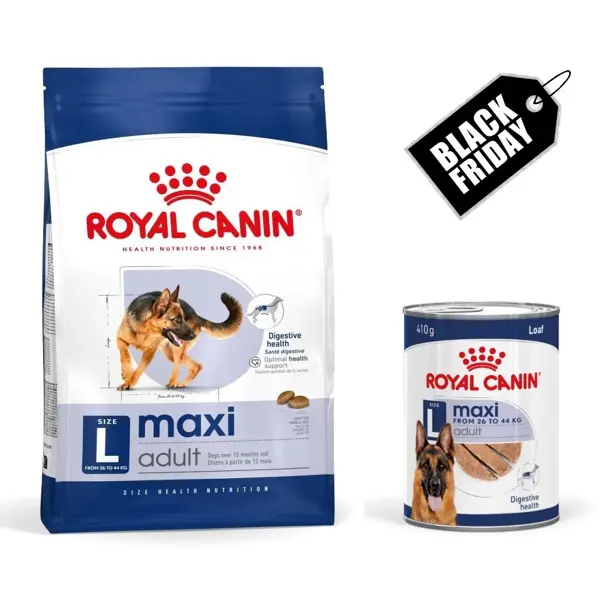 מבצע! רויאל קנין מזון לכלב בוגר מגזע גדול + 4 שימורים במתנה Royal Canin Maxi Adult Dry Dog Food