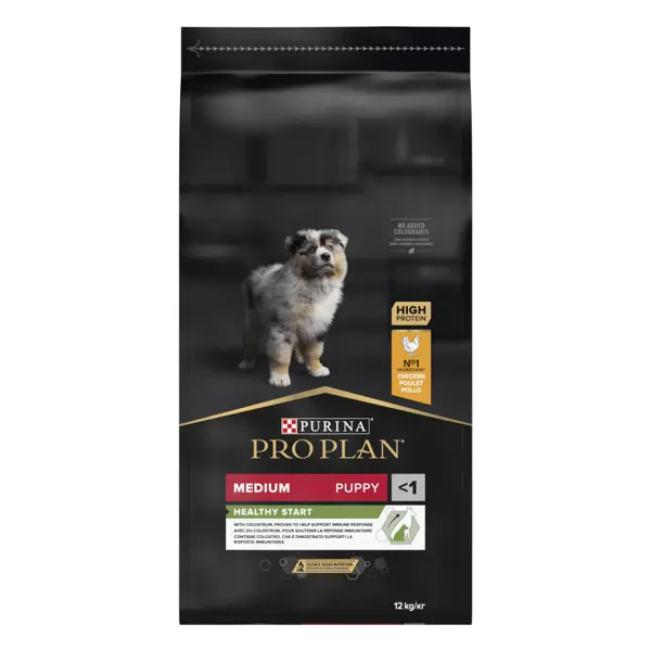 Purina Pro Plan Healthy Start Medium Puppy בטעם עוף ואורז מעניק לגור שלכם תזונה שלמה ומאוזנת שתומכת בהתפתחות חיונית בכל שלב הגדילה.