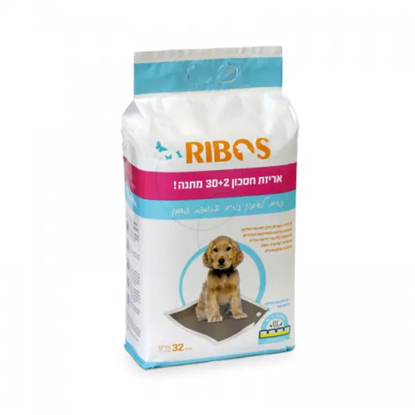 פדים לאימון גורים בתוספת פחמן 32 יחידות ריבוס Ribos Carbone puppy pads 32 Pcs