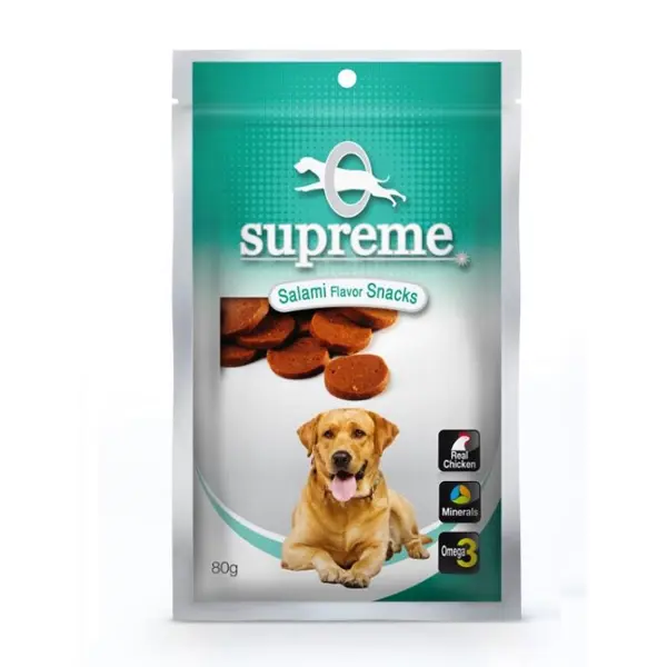 חטיף סופרים בשר עוף לכלבים בטעם סלמי תוצרת חברת Supreme.