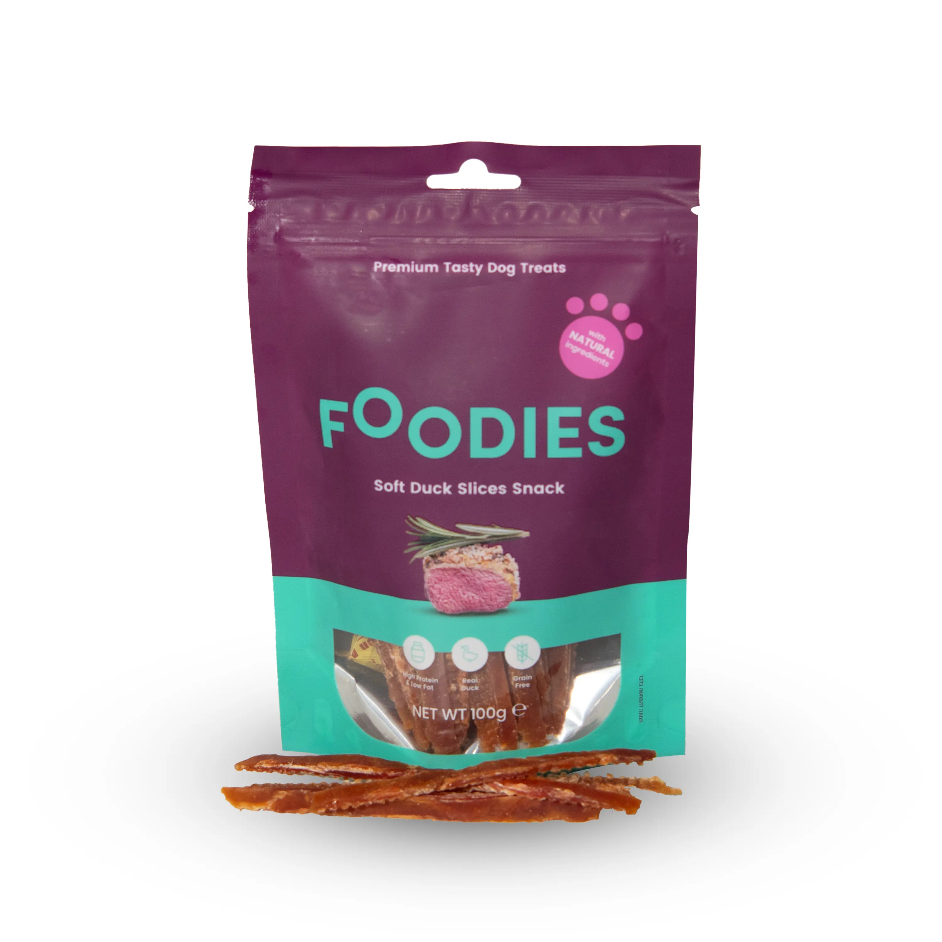 חטיפי פודיס נתחי ברווז רכים הינם חטיפים בשריים טעימים במיוחד המתאימים למתן כפינוק בכל זמן רצוי, לסיוע באילוף או כתוספת טעימה לארוחה.