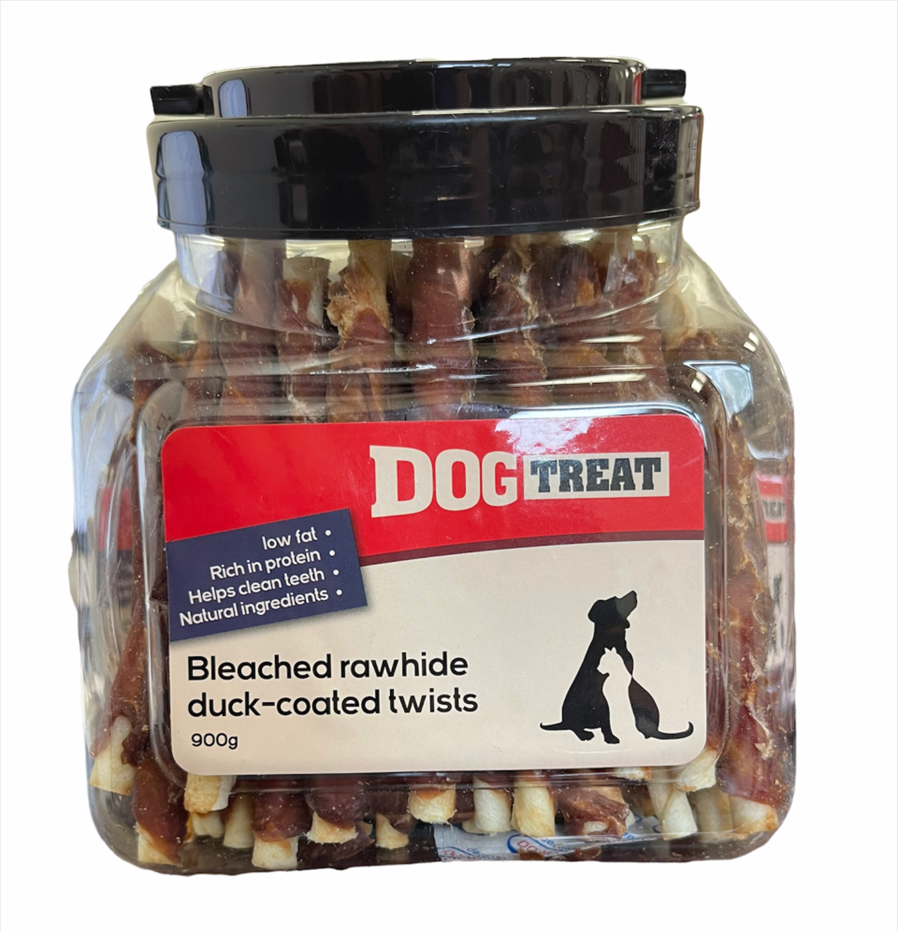 DOGTREAT super pets Bleached rawhide duck-coated twists