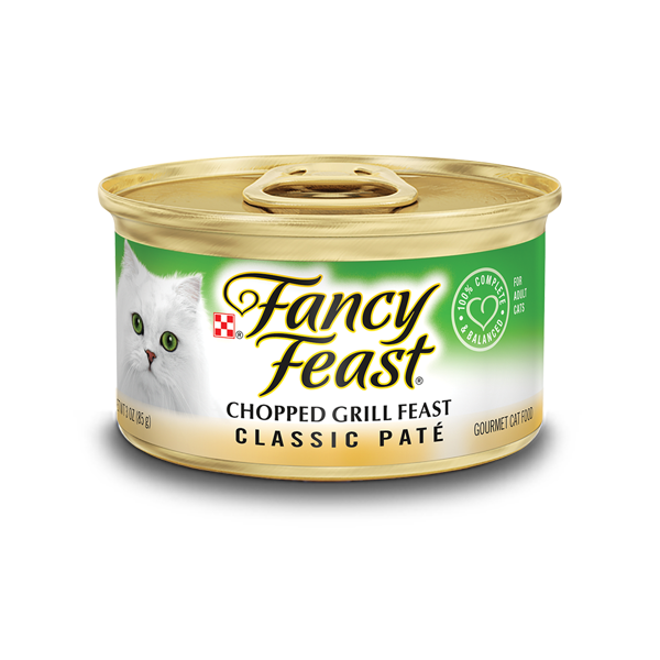 Fancy Feast פטה גריל קצוץ עם עוף וכבד, מזון לח המעניק לחתולים 100% תזונה מלאה ומאוזנת לצד ארוחת גורמה במרקם עשיר ומפנק במיוחד, כמו שחתולים אניני טעם אוהבים!