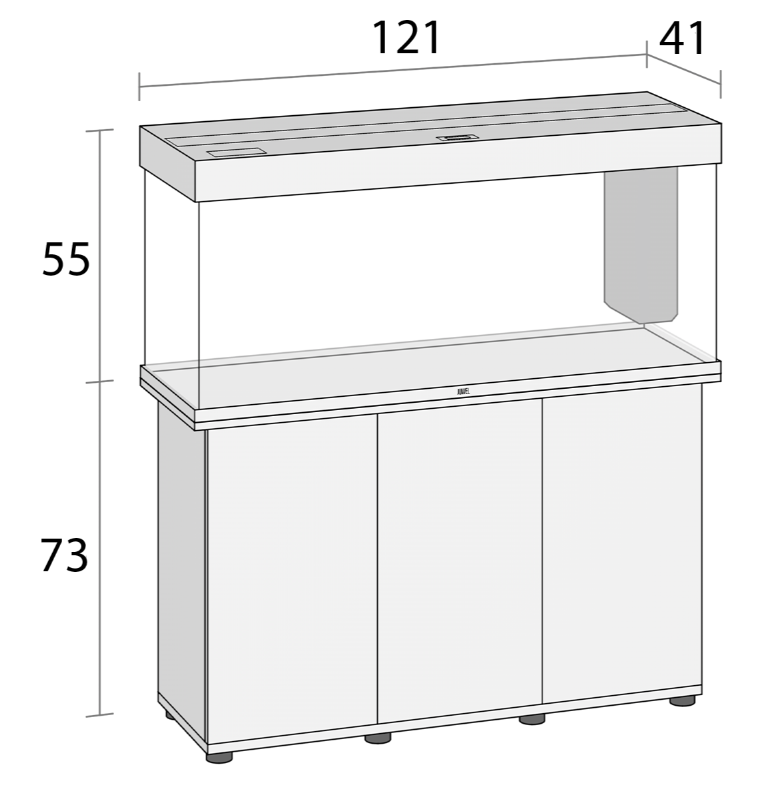 חזית 121 ס"מ, גובה 73 ס"מ, עומק 41 ס"מ