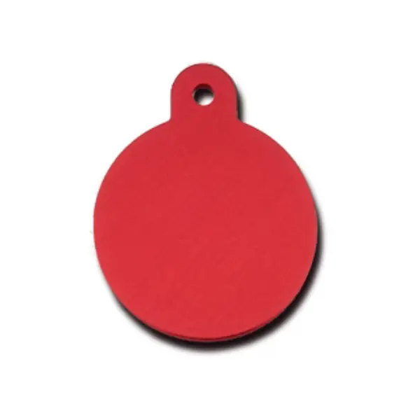תג השם מעוצב בצורת עיגול בצבע אדום.