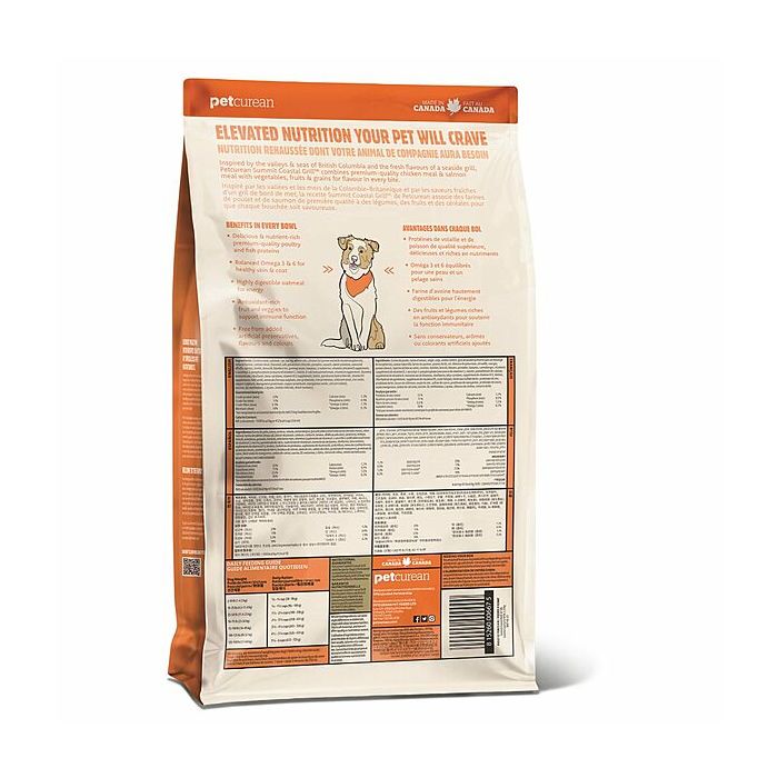Petcurean Summit Coastal Grill משלב ארוחת עוף וארוחת סלמון באיכות פרימיום עם ירקות, פירות ודגנים לטעם בכל ביס.