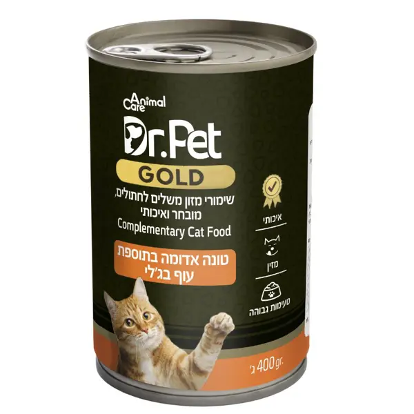 מגש שימורי דר פט גולד טונה אדומה ועוף בג'לי לחתול (24 יחידות) Dr.Pet GOLD complementary Cat Food Tuna & Chicken