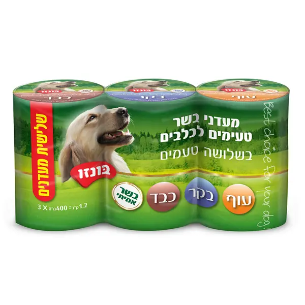בונזו מולטיפק 3 שימורים בטעמים שונים לכלב Bonzo multipack Cans for DOGS