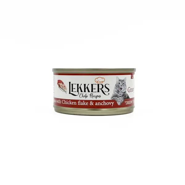 מגש 24 יחידות לקרס מעדן לחתול טונה אדומה עם פתיתי עוף ואנשובי LEKKERES chefs recipes Wet food for Cats