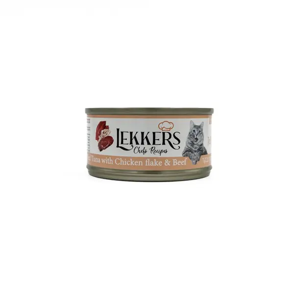 מגש 24 יחידות לקרס מעדן לחתול טונה אדומה, פתיתי עוף ובקר LEKKERES chefs recipes Wet food for Cats