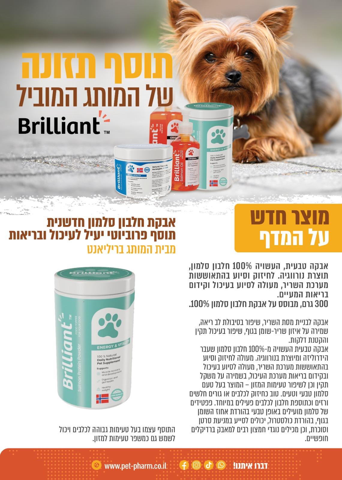בריליאנט תוסף לעיכול ובריאות המעיים לכלבים Brilliant Salmon Protein Powder For DOGS