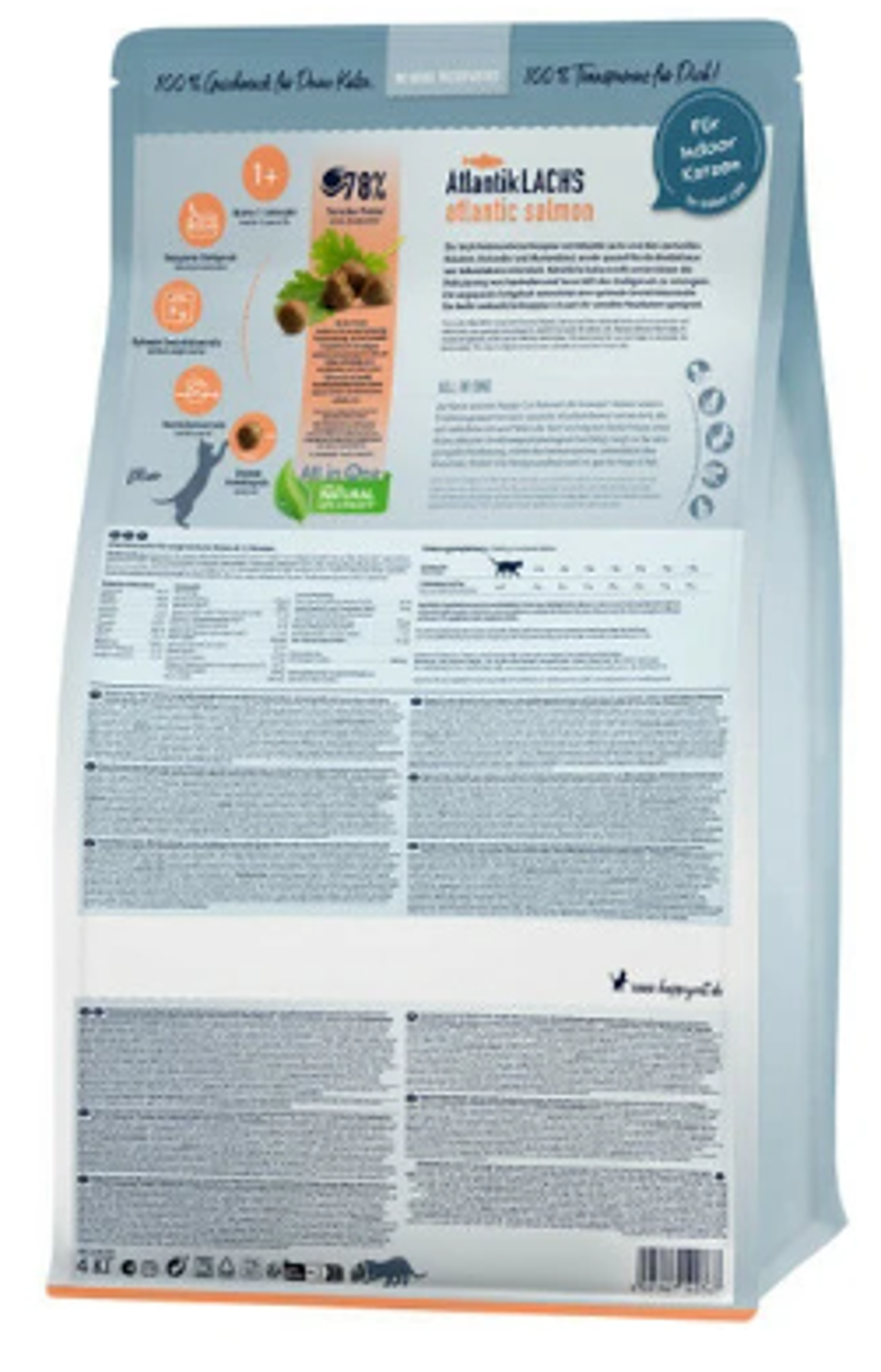 מכיל שומן מופחת למניעת עודף משקל, אצת יוקה שידגרה להפחתת ריחות צרכים, חומצות אומגה 3 ו-6 לעור ולפרווה.