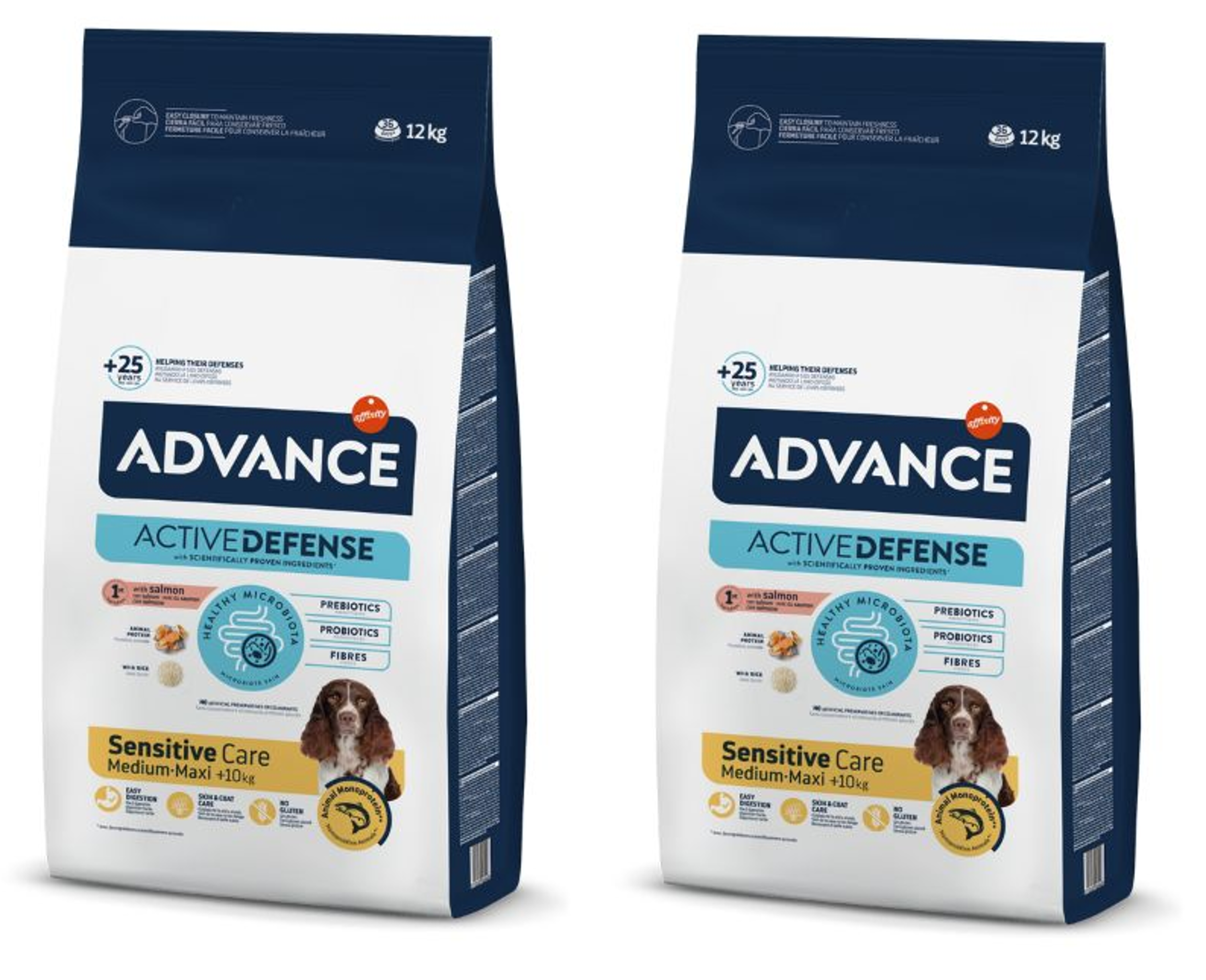 2 שקי אדוונס מזון יבש לכלב בוגר סלמון 12ק"ג כל שק two bags Advance Salmon&Rice Formula Dry Food For Adult Dog