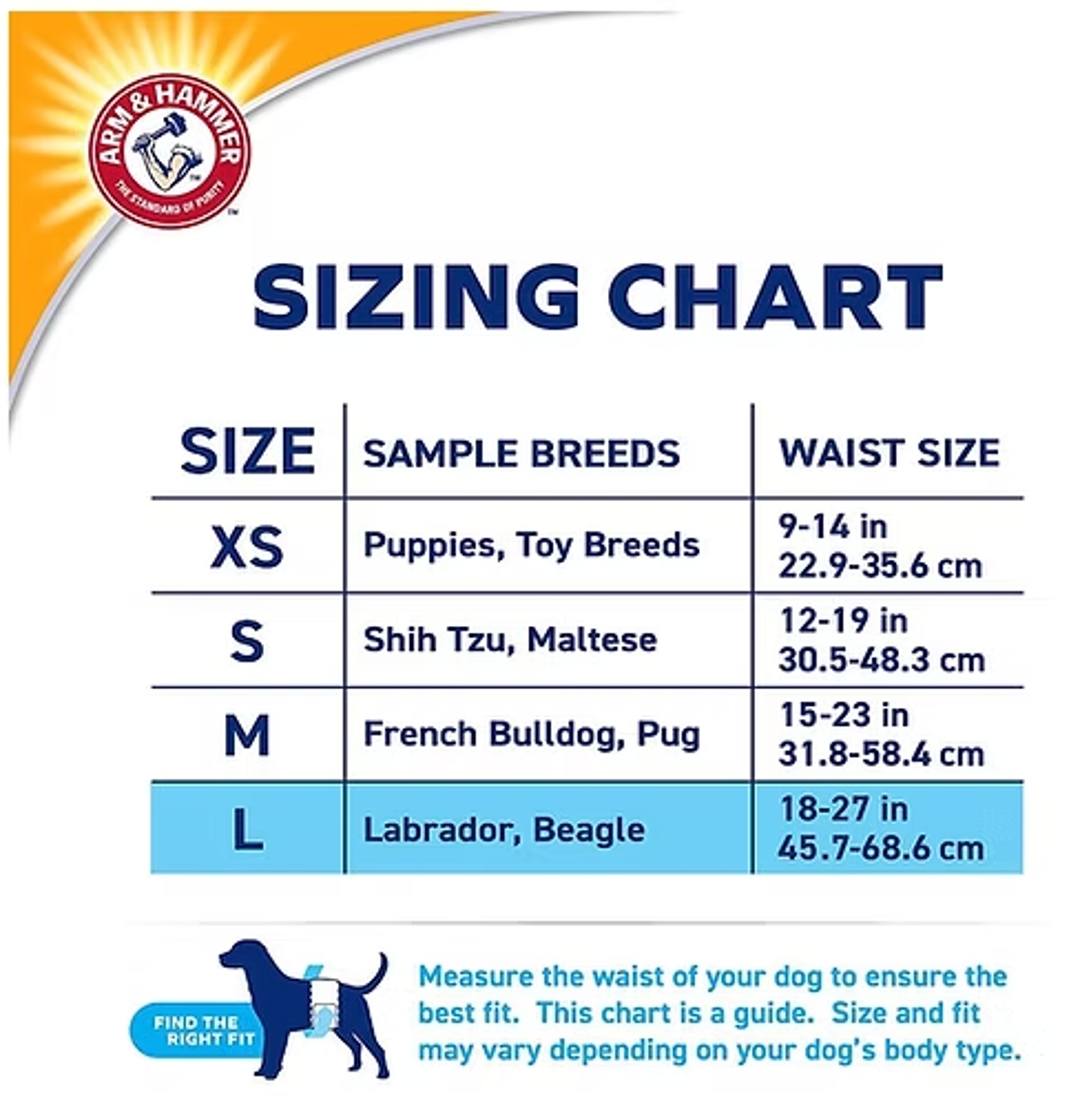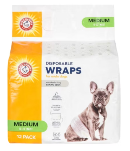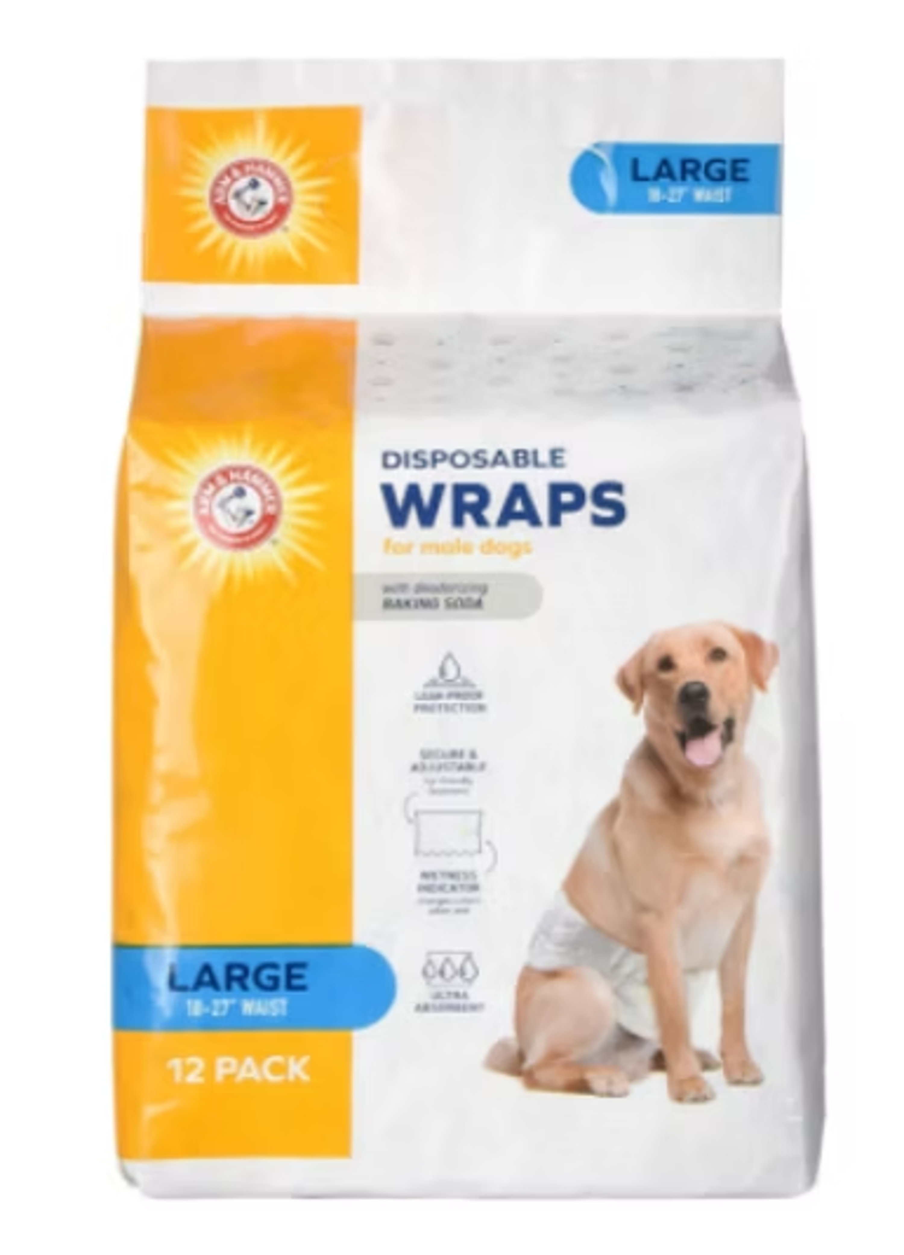 חיתולים לכלבים זכרים 12יח' - גודל לבחירה Arm & Hammer Dog Diapers - Size to choose from