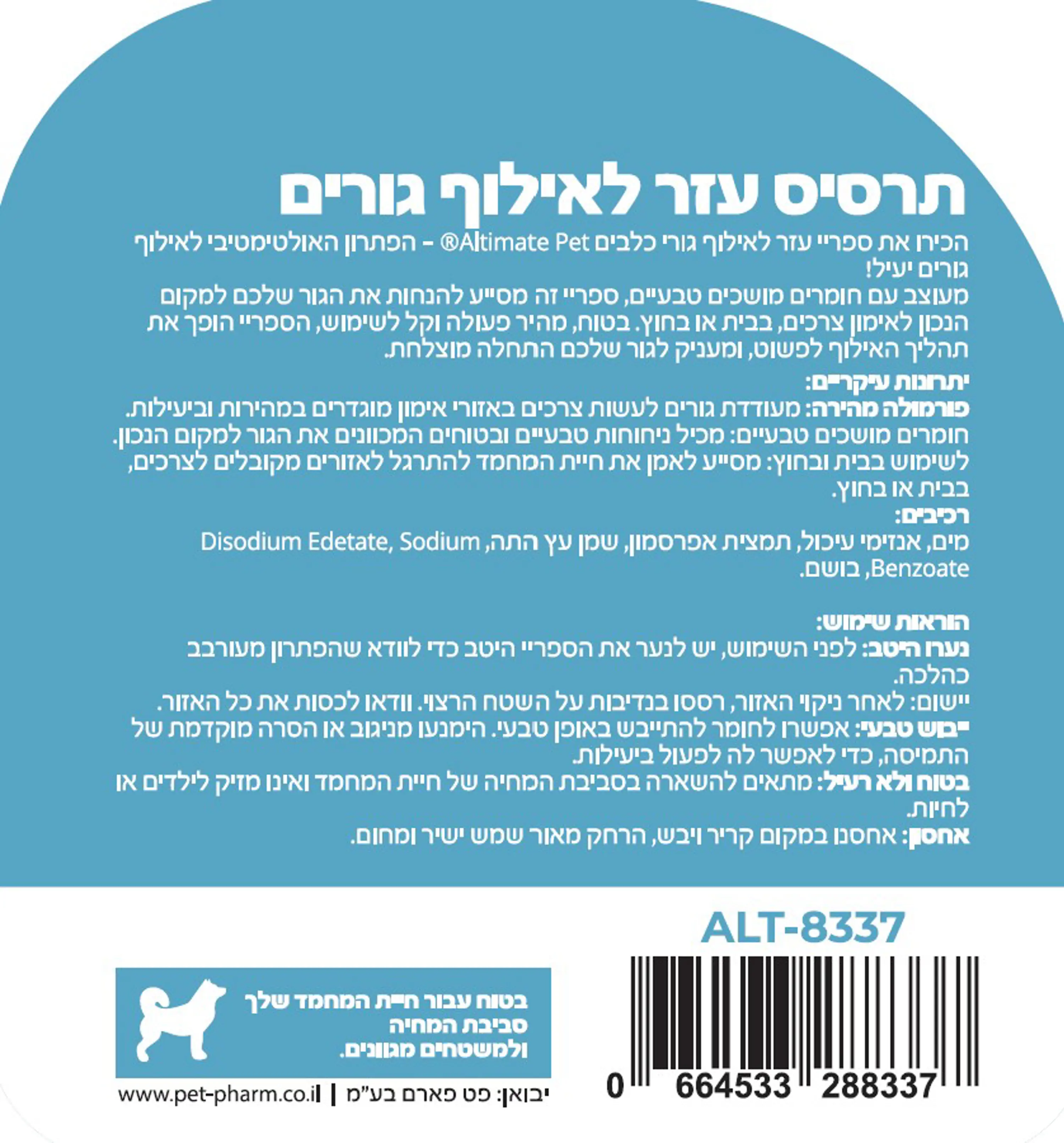 🔹 מבית Altimate Pet – מותג מוביל בפתרונות אילוף, ניקוי והיגיינה לחיות מחמד.