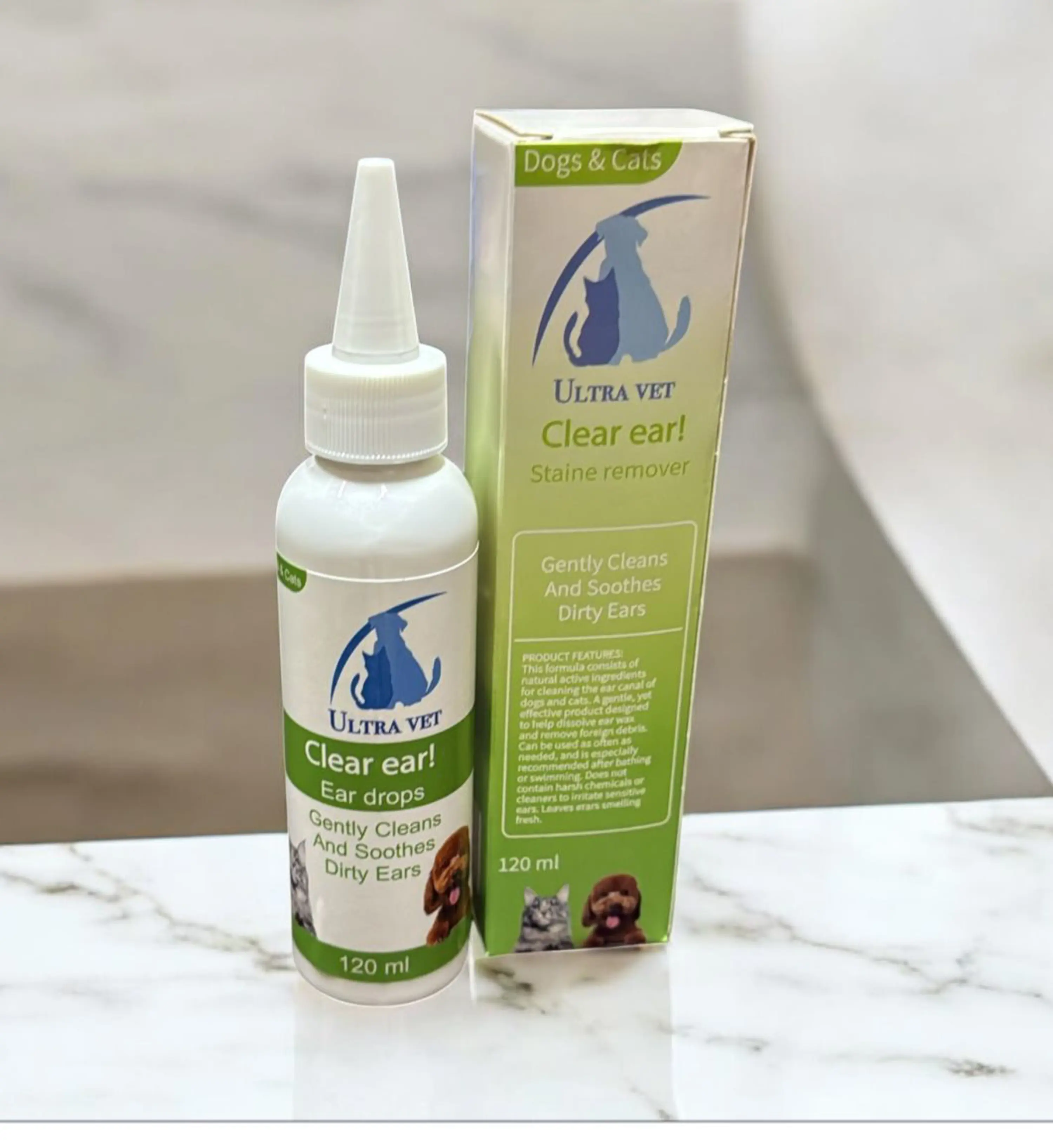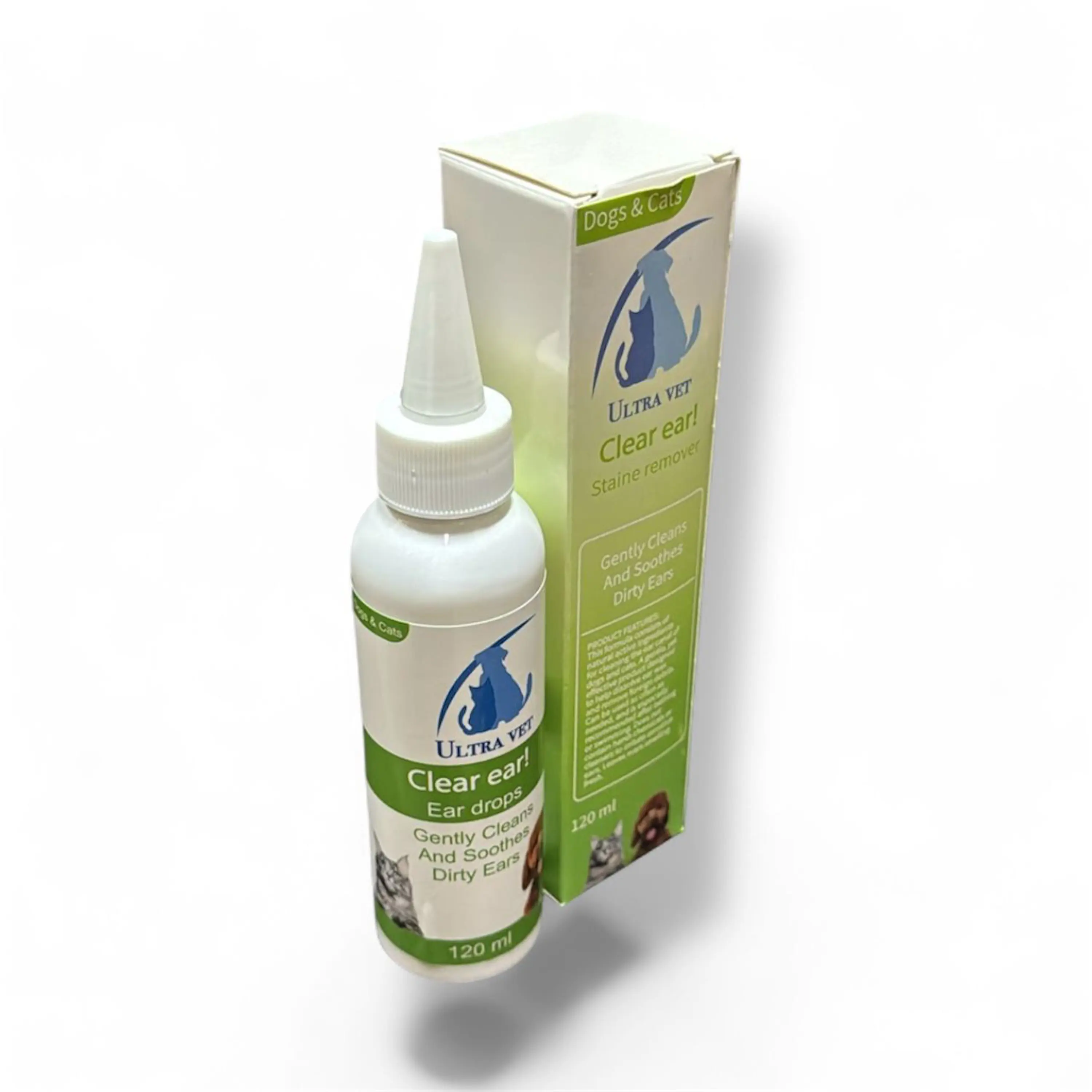 - Ultra Vet Clear Ear! – נוזל לניקוי אוזניים ולהרגעת העור לכלבים וחתולים - 120 מ"ל