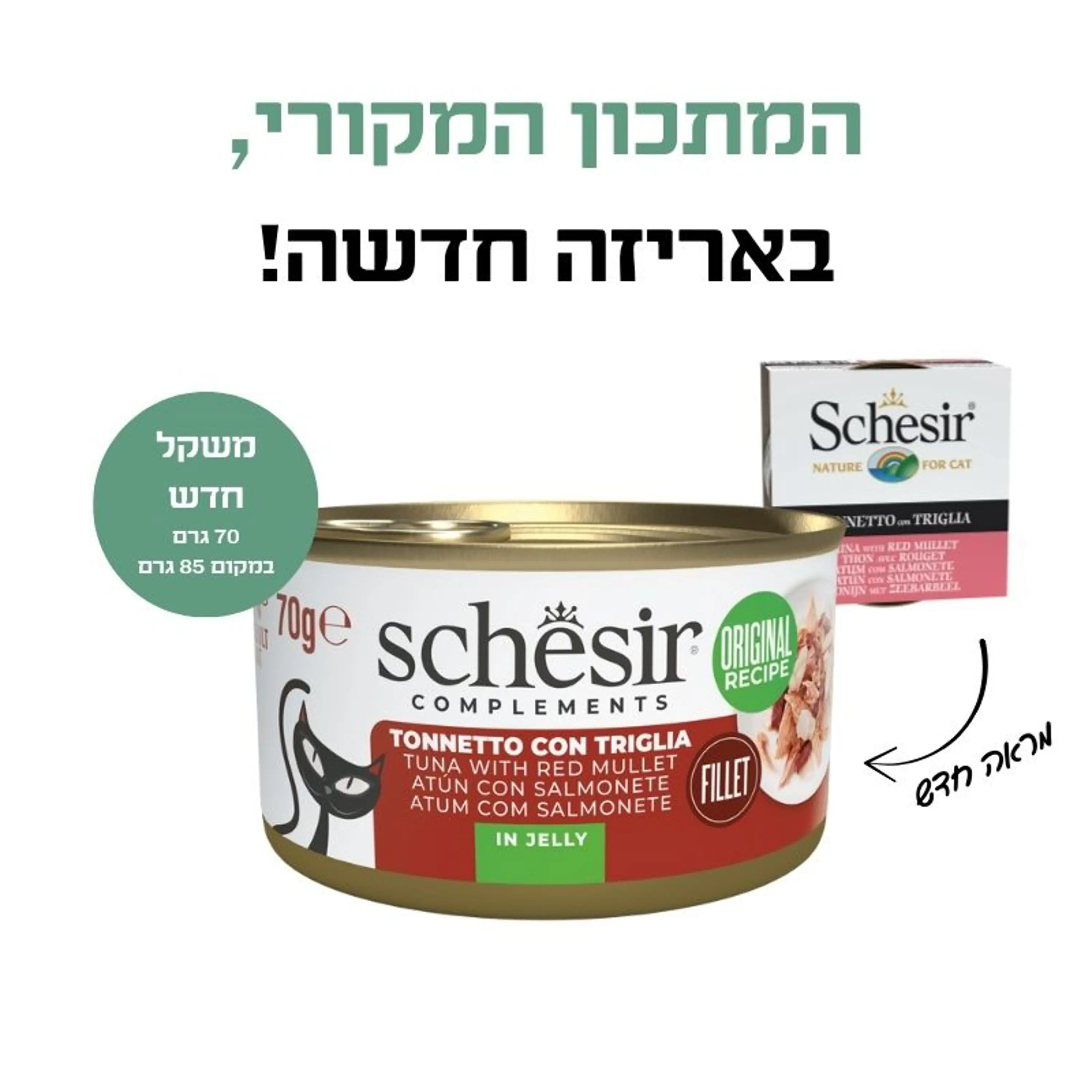 למה לבחור בקו החדש של המזונות הרטובים לחתולים: המשכיות בטעם ובריח המוכרים: תוך כדי ששיפרנו את הפרופיל התזונתי, שמרנו על הטעם והריח המוכרים של המוצרים שלנו, כך שהחתול שלך יזהה את הטעמים והמרקמים שהוא כבר אוהב. חדשנות עם כבוד למסורת: עיצוב האריזה החדש משקף את ההתפתחות של המוצר תוך שמירה על הזהות שהפכה את Schesir למותג אמין בקרב בעלי חתולים. בידול מהמתחרים: השילוב של מרכיבים טבעיים, היעדר תוספים מלאכותיים והפרופיל התזונתי המשופר הופכים את התזונה המלאה של Schesir לבחירה ייחודית.