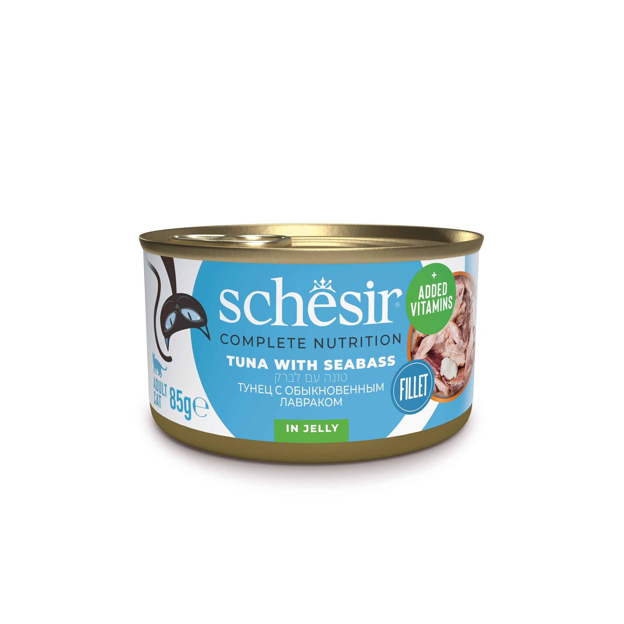 שזיר מעדן מלא לחתול נתחוני טונה עם לברק בג'לי Schesir Tuna with Seabass in Jelly wet cat food
