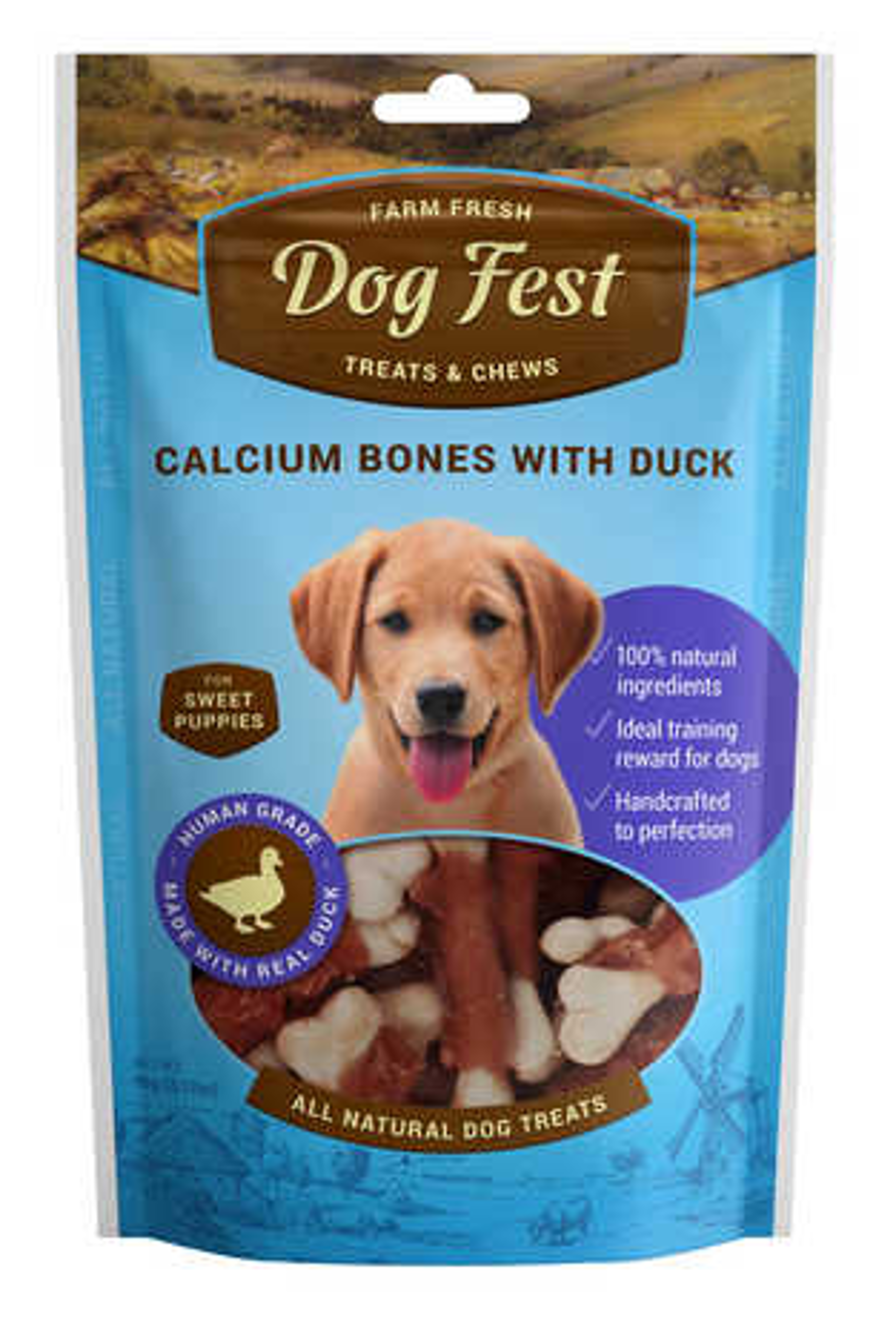 חטיף עצמות קלציום עטופות ברווז לגורי כלבים DOG FEST Calcium bone with Duck