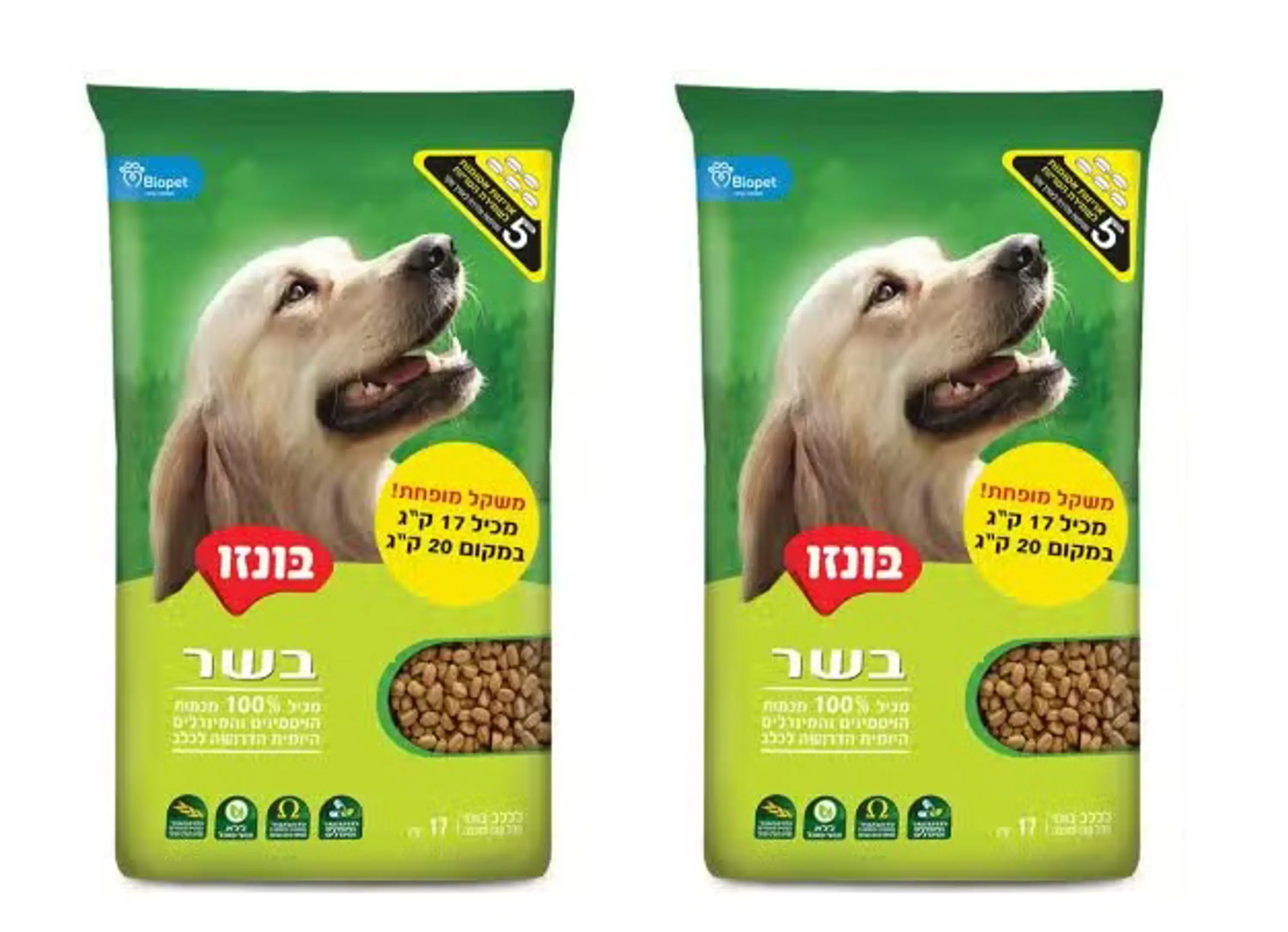 2 שקי מזון לכלבים בונזו בשר 17 קילו כל שק